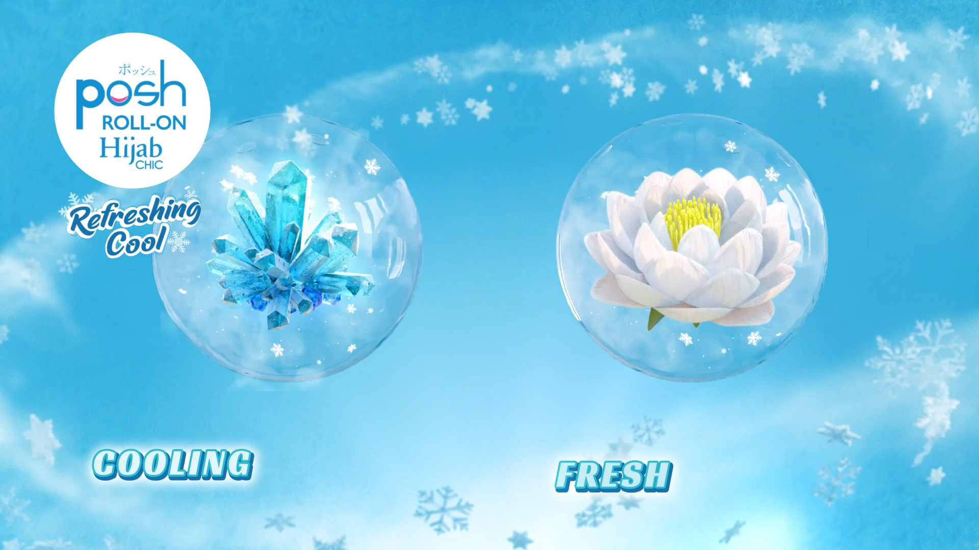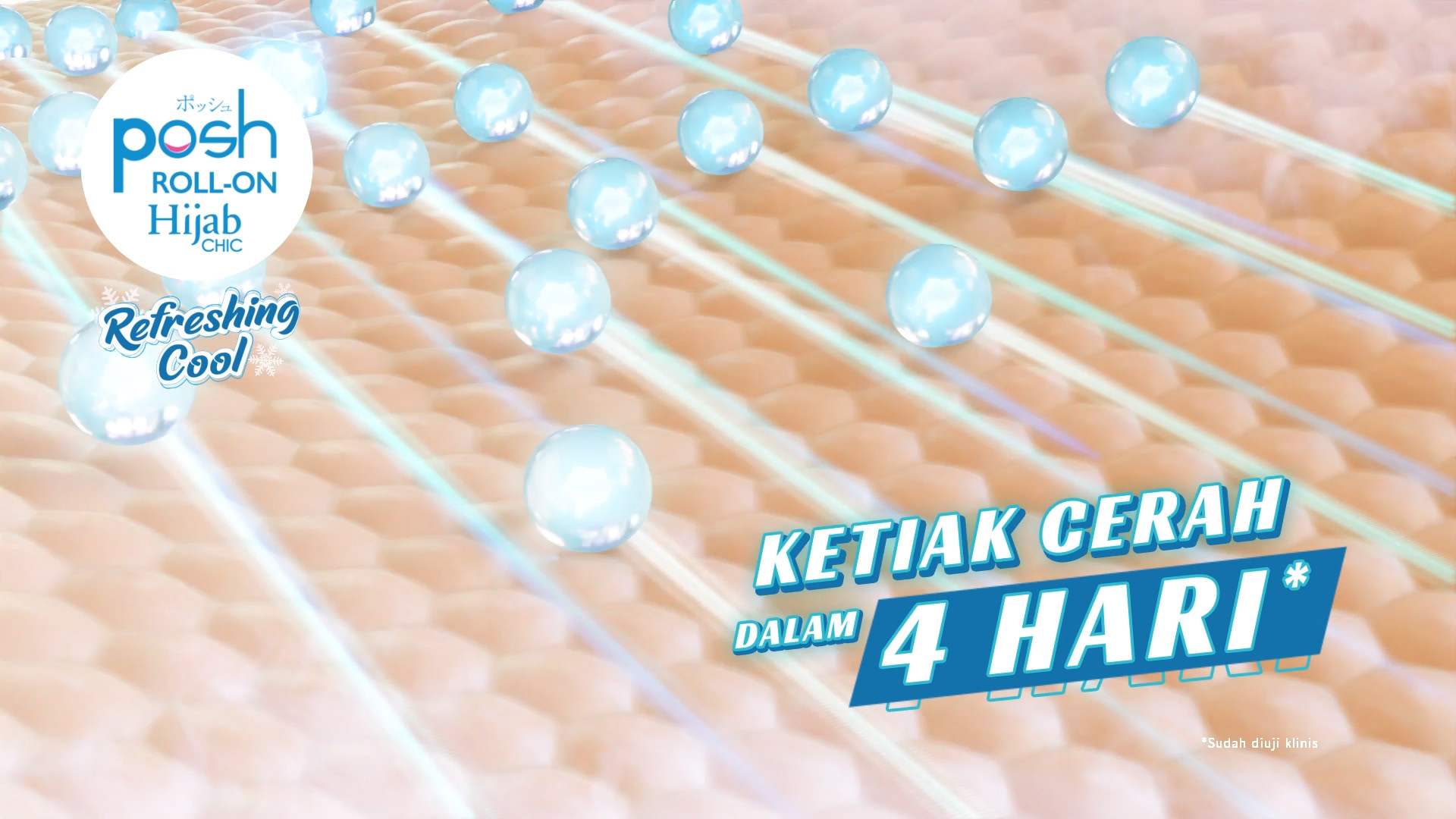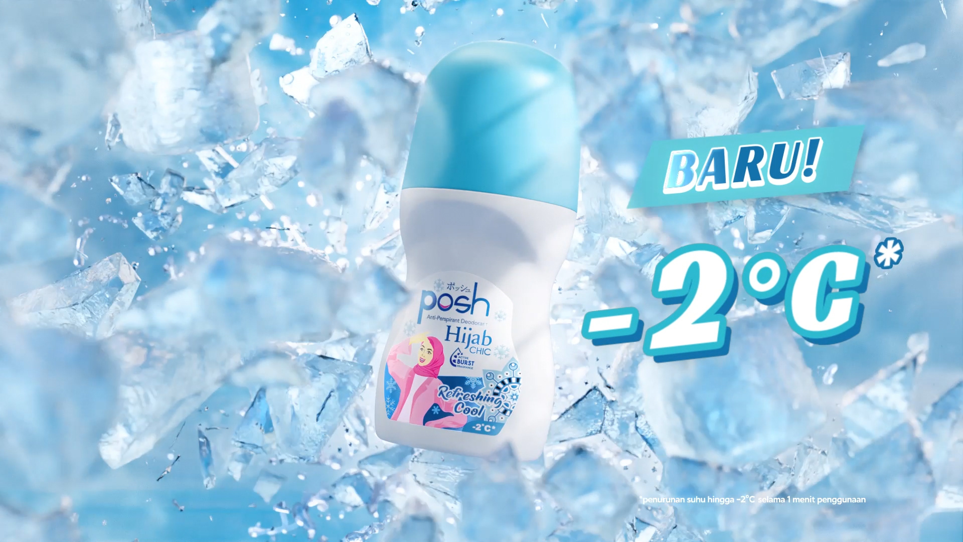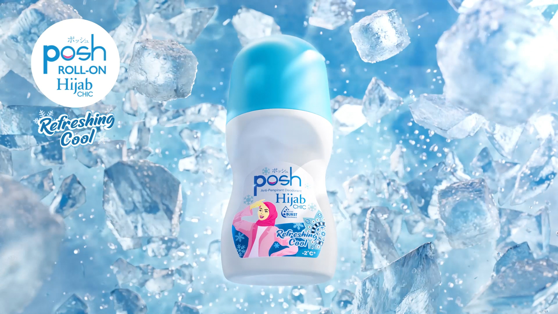 Get a blast of cool with the new Posh Roll-On Hijab Refreshing Cool. Enjoy a chilly sensation down to minus 2 degrees with a unique menthol freshness that energizes you all day. The water-based formula helps brighten underarms in just 4 days while the Active Burst fragrance keeps you feeling clean and confident. Stay dry, fresh, and ready for anything. Perfect for hijabers who want to stay cool and active. Try it now and step out with confidence!