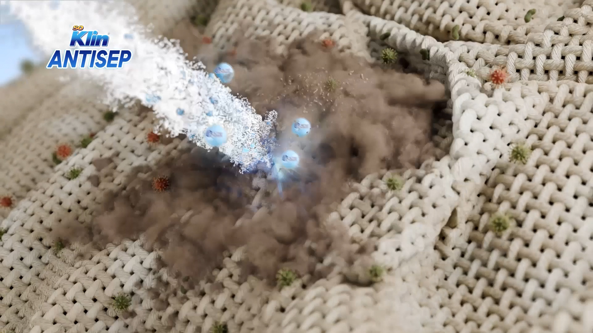 For this project, we received a brief from the director to clearly communicate the core benefits of Soklin Antisept: its ability to eliminate bacteria and lift stubborn stains from deep within fabric fibers.