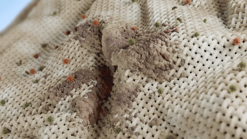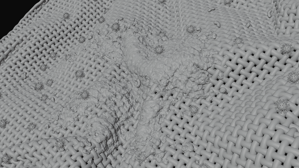 The journey started with high-detail fabric fiber modeling, followed by cloth simulations to capture natural fabric movement, and particle simulations to visualize how dirt is lifted from the deepest layers of the fibers.